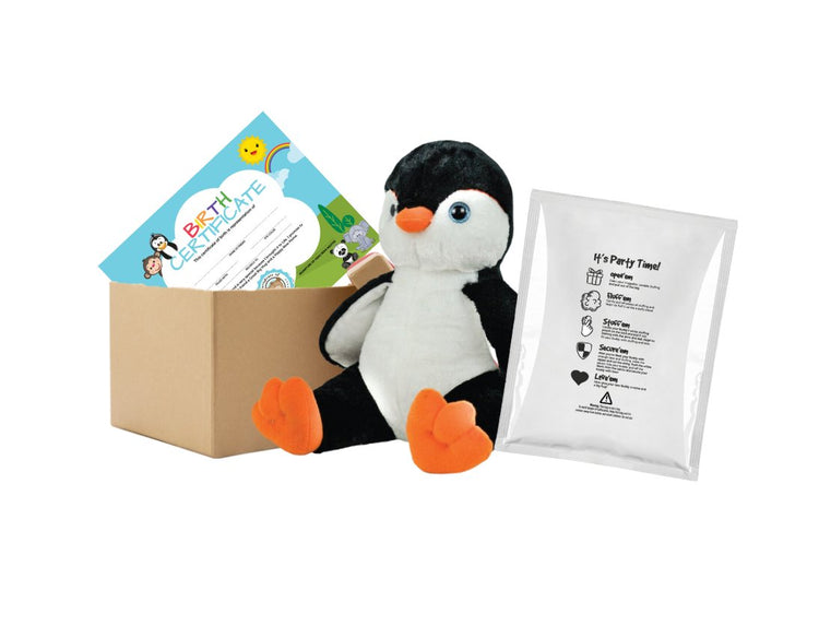 These kits come with an unstuffed 16" plush animal, large pouch for just the right amount of stuffing and a birth certificate so you can create and name your new friend(s).