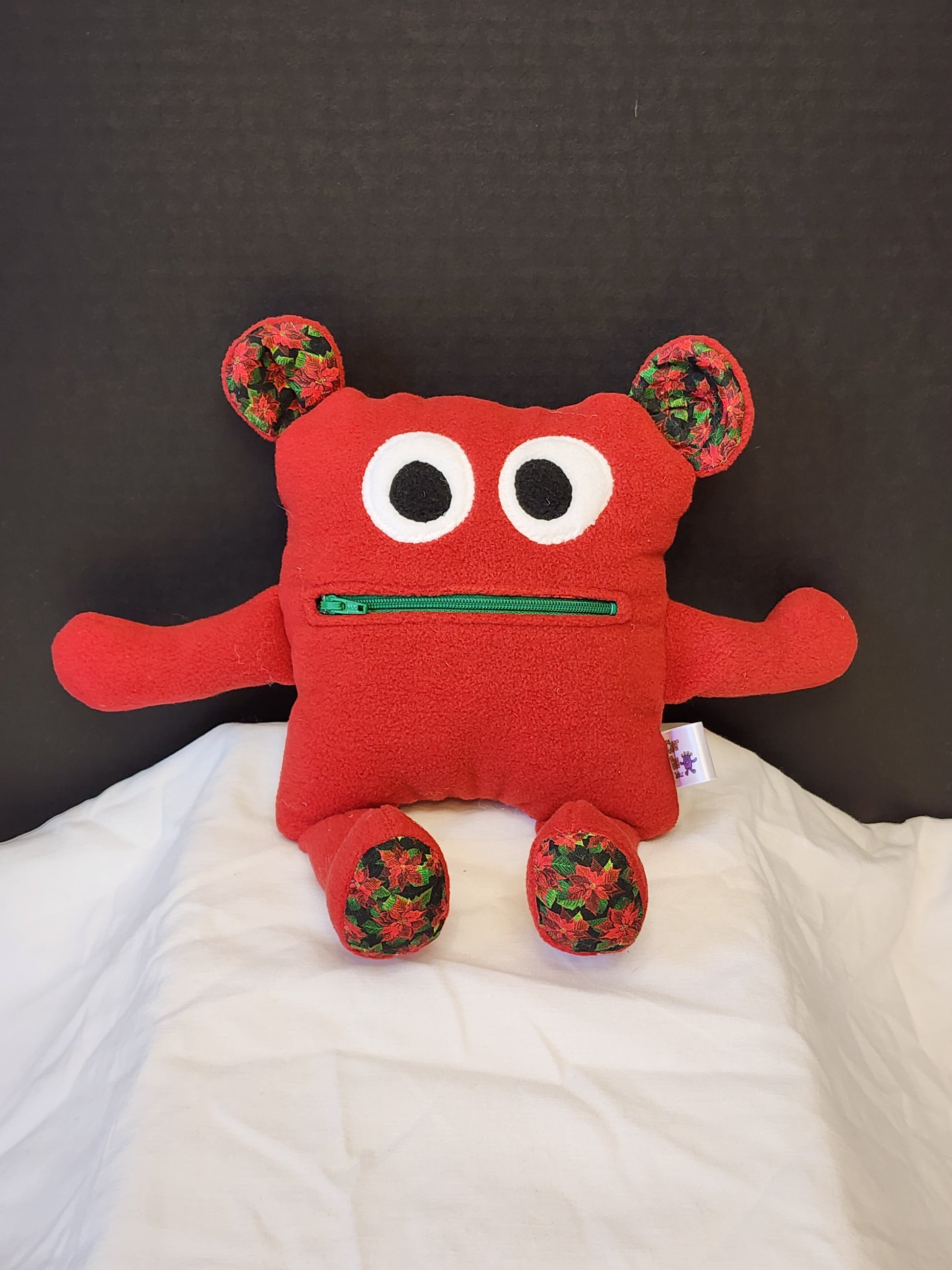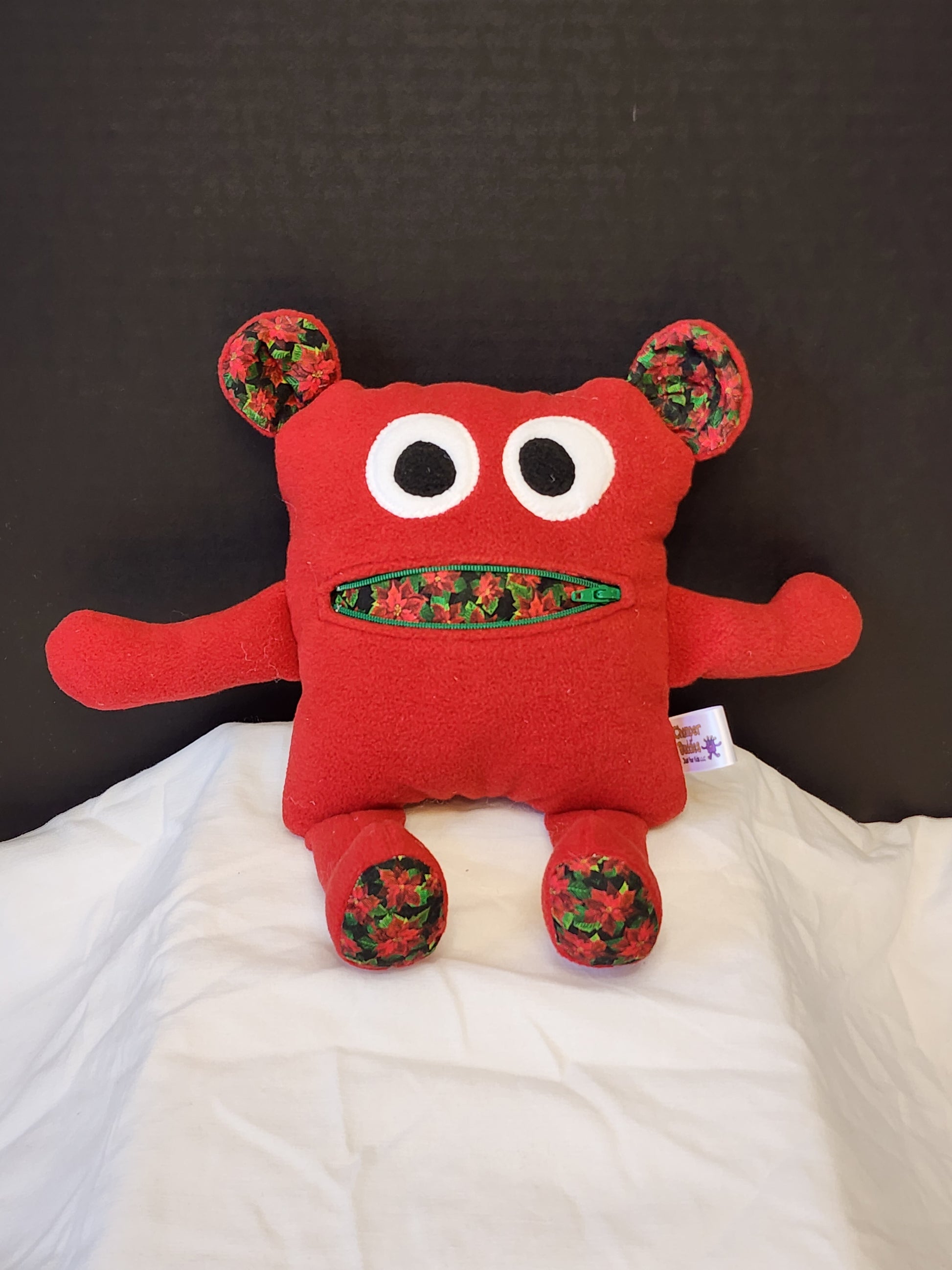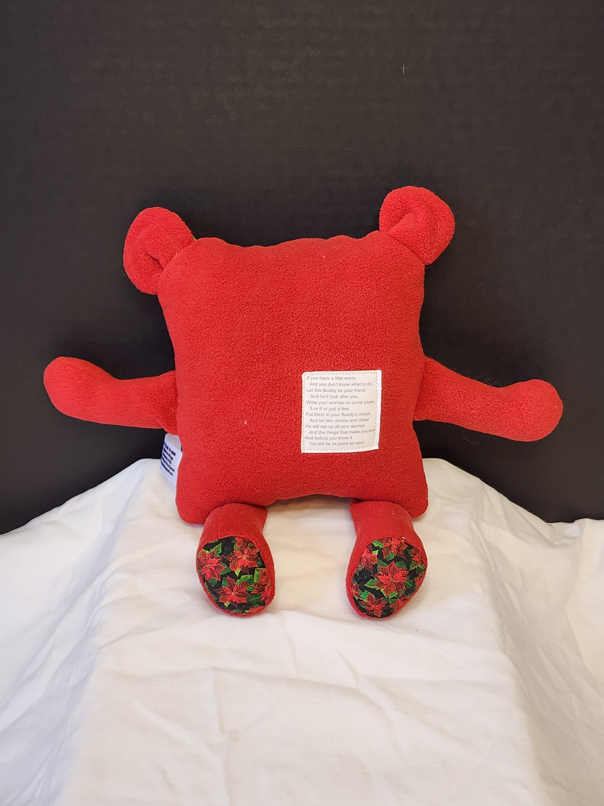 This custom, one-of-a-kind Chomper Buddy is red fleece with Pooinsettia lining is ready to chomp any anxieties or worries away! Once you write or draw your worries on paper, you can feed your worries to the Chomper. Lose a tooth, put it in the Chompers mouth for the Tooth Fairy or even a Christmas list for Santa to take out of the zipper mouth. Perfect for all ages, it offers a plush and cozy feel with superior durability for tons of hugs and cuddles.