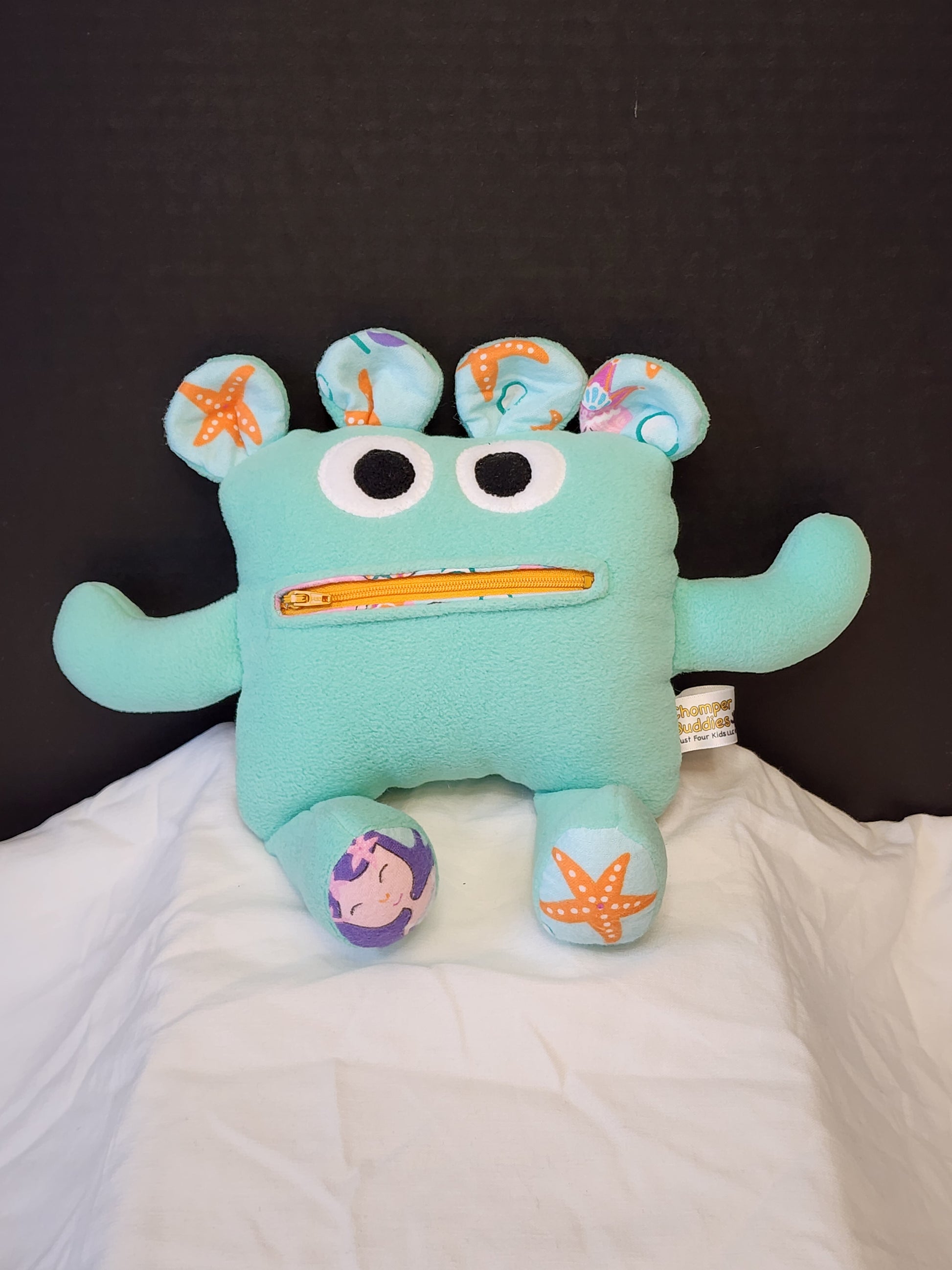 Chomper Buddy 11" Teal fleece with mermaid lining