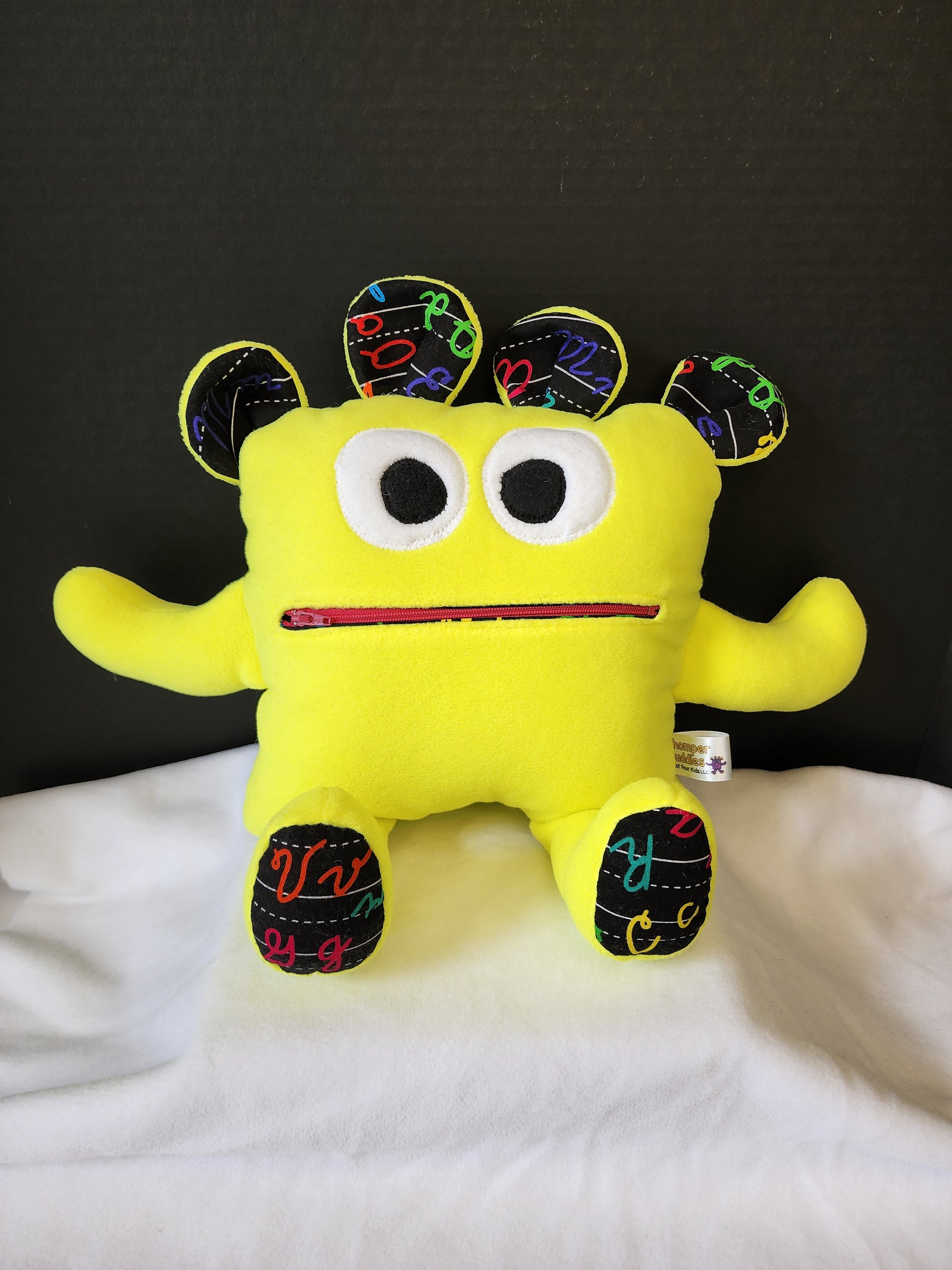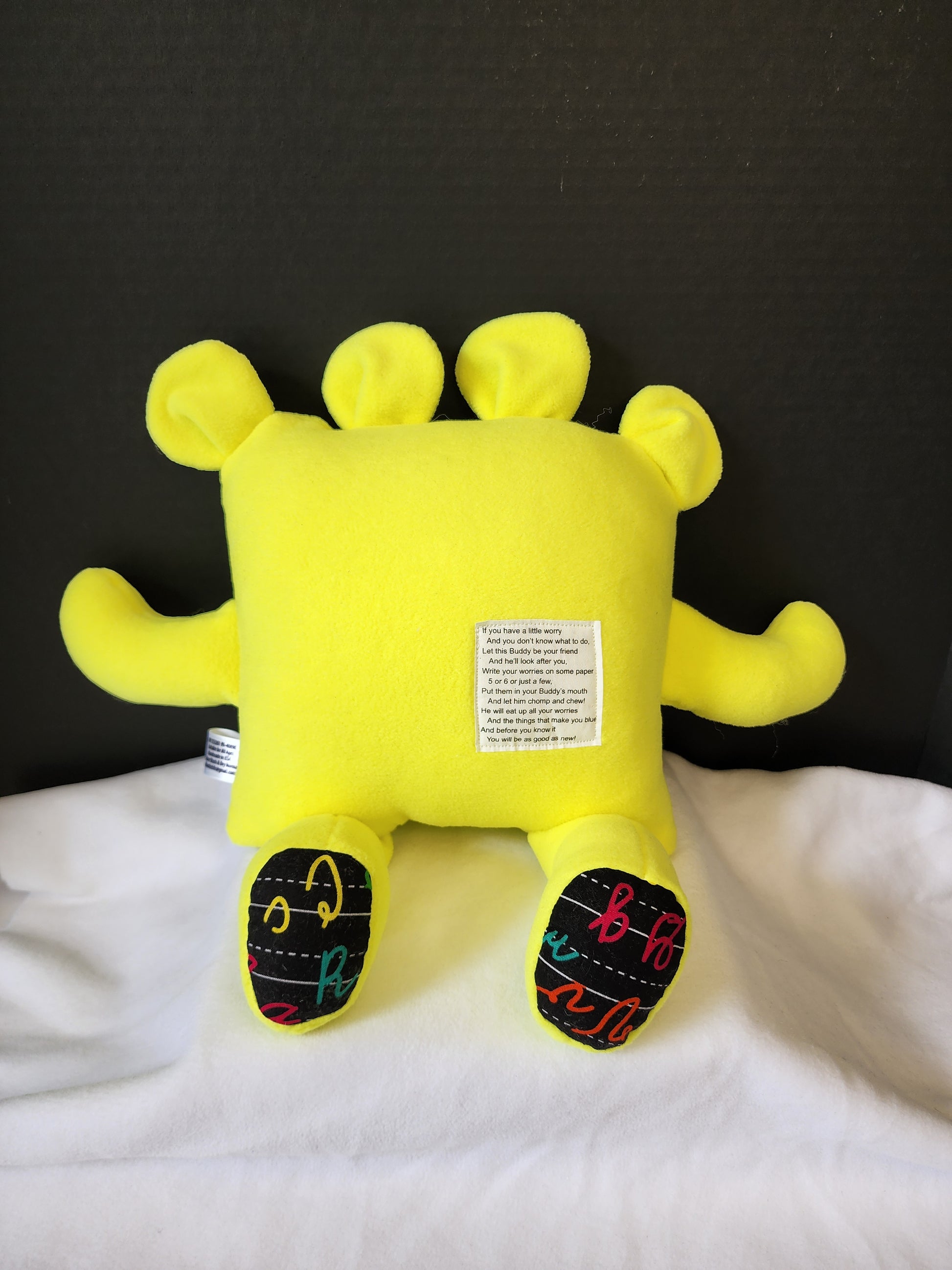 This custom, one-of-a-kind Chomper Buddy is neon yellow fleece with cursive alphabet lining and ready to chomp any anxieties or worries away! Once you write or draw your worries on paper, you can feed your worries to the Chomper. Lose a tooth, put it in the Chompers mouth for the Tooth Fairy or even a Christmas list for Santa to take out of the zipper mouth. Perfect for all ages, it offers a plush and cozy feel with superior durability for tons of hugs and cuddles.