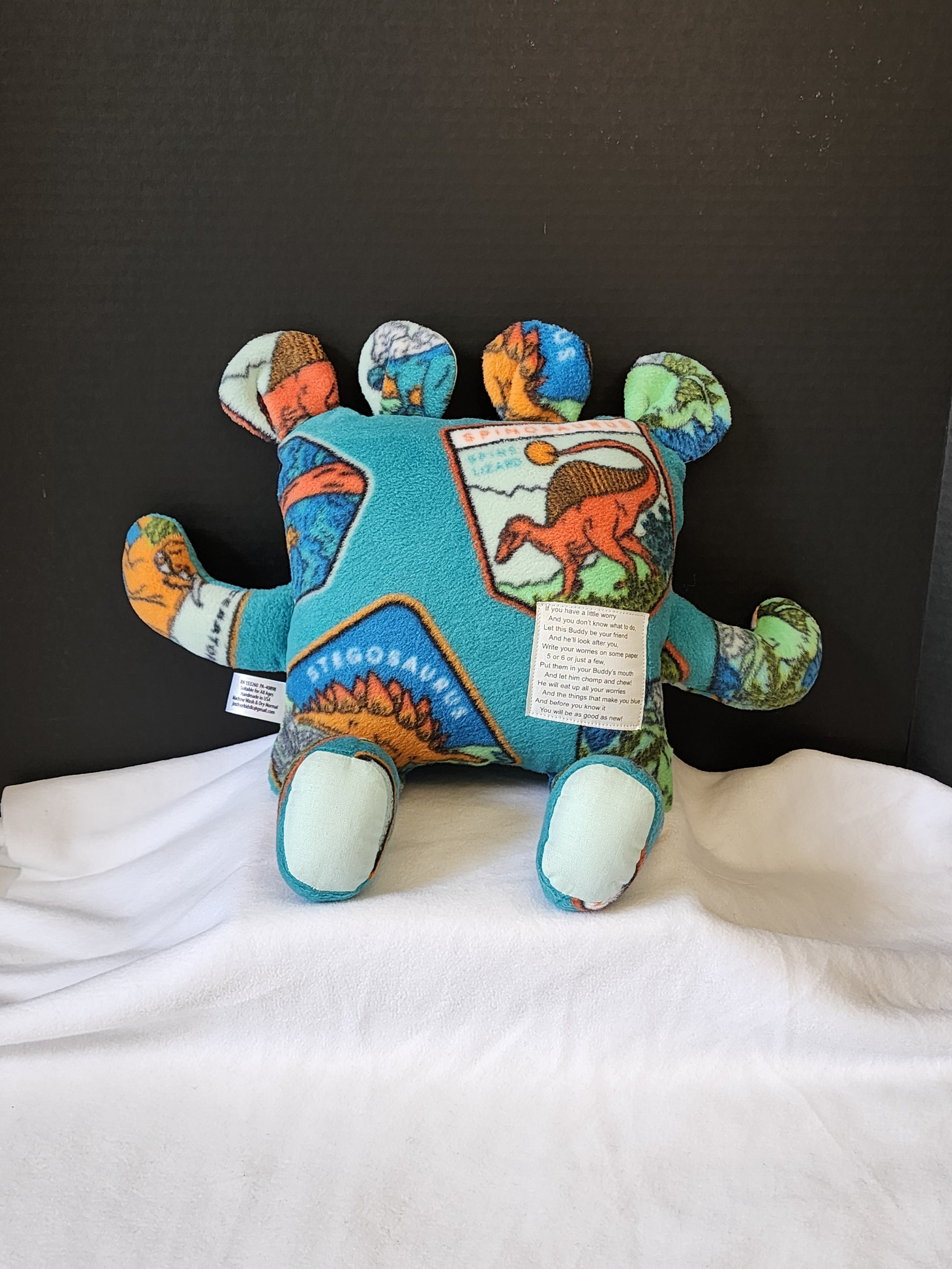 This unique handmade buddy is made with soft quality fleece and cotton materials on the outside and stuffed with soft, poly fiber on the inside. It's perfect for providing comfort and calming for anyone. Great tools for sensory, trauma or therapy and so much more.
