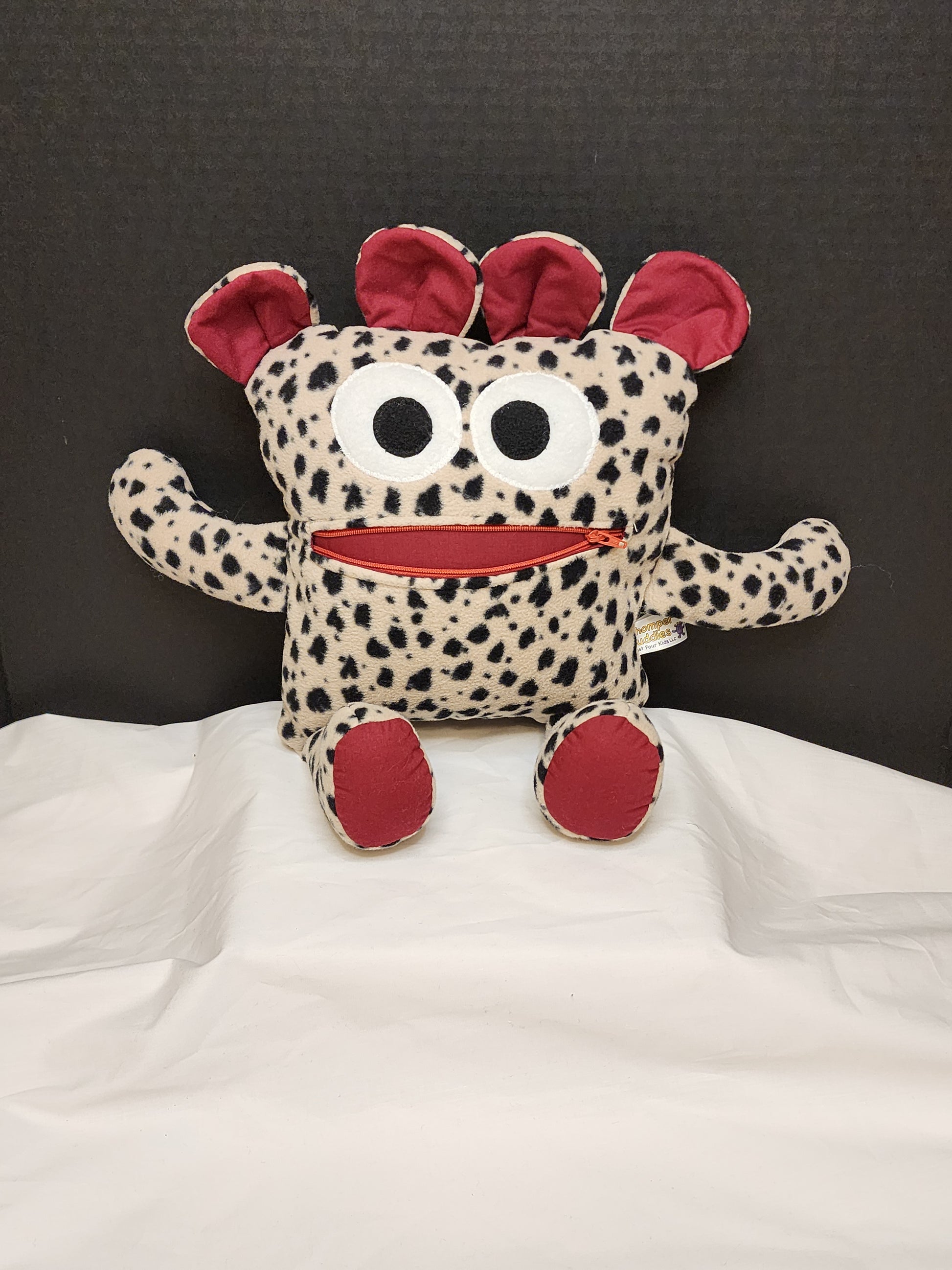 This custom, one-of-a-kind Chomper Buddy is animal print fleece with burgundy lining is ready to chomp any anxieties or worries away! Once you write or draw your worries on paper, you can feed your worries to the Chomper. Lose a tooth, put it in the Chompers mouth for the Tooth Fairy or even a Christmas list for Santa to take out of the zipper mouth. Perfect for all ages, it offers a plush and cozy feel with superior durability for tons of hugs and cuddles.