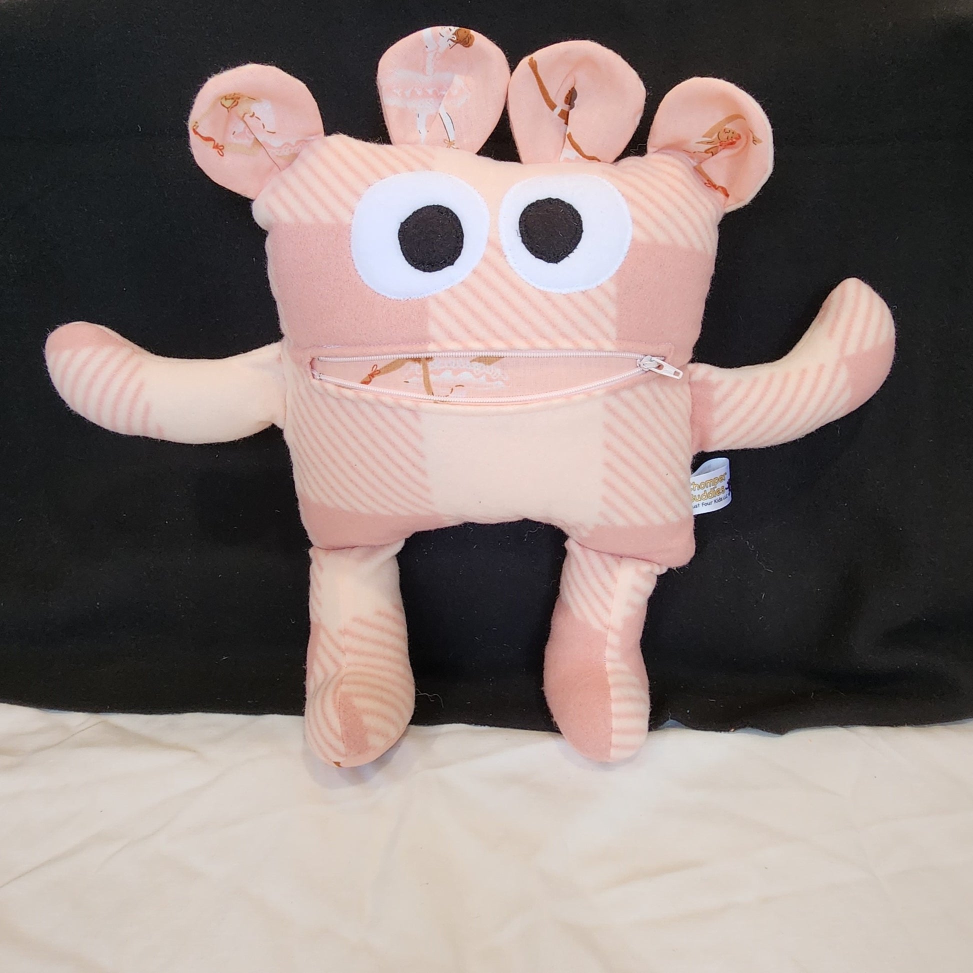 This custom, one-of-a-kind Chomper Buddy is pink plaid fleece with ballerina lining and is ready to chomp any anxieties or worries away! Once you write or draw your worries on paper, you can feed your worries to the Chomper. Lose a tooth, put it in the Chompers mouth for the Tooth Fairy or even a Christmas list for Santa to take out of the zipper mouth. Perfect for all ages, it offers a plush and cozy feel with superior durability for tons of hugs and cuddles.