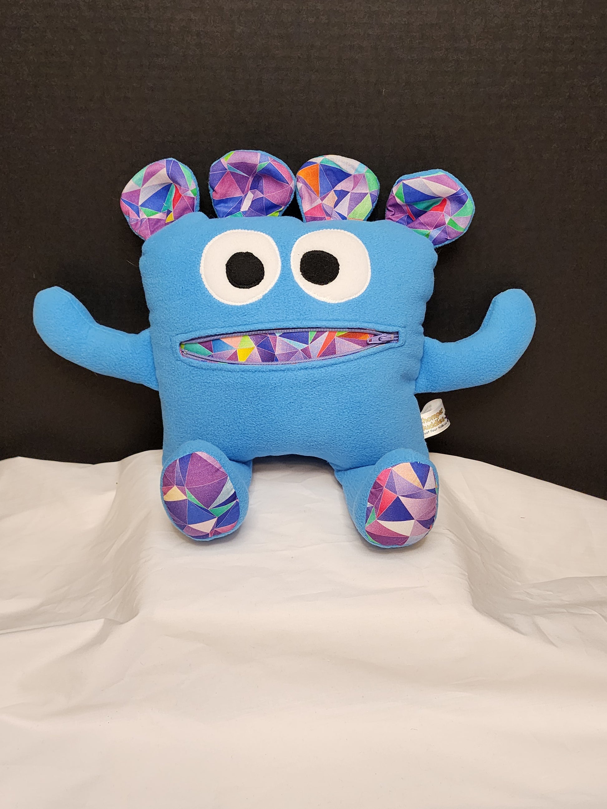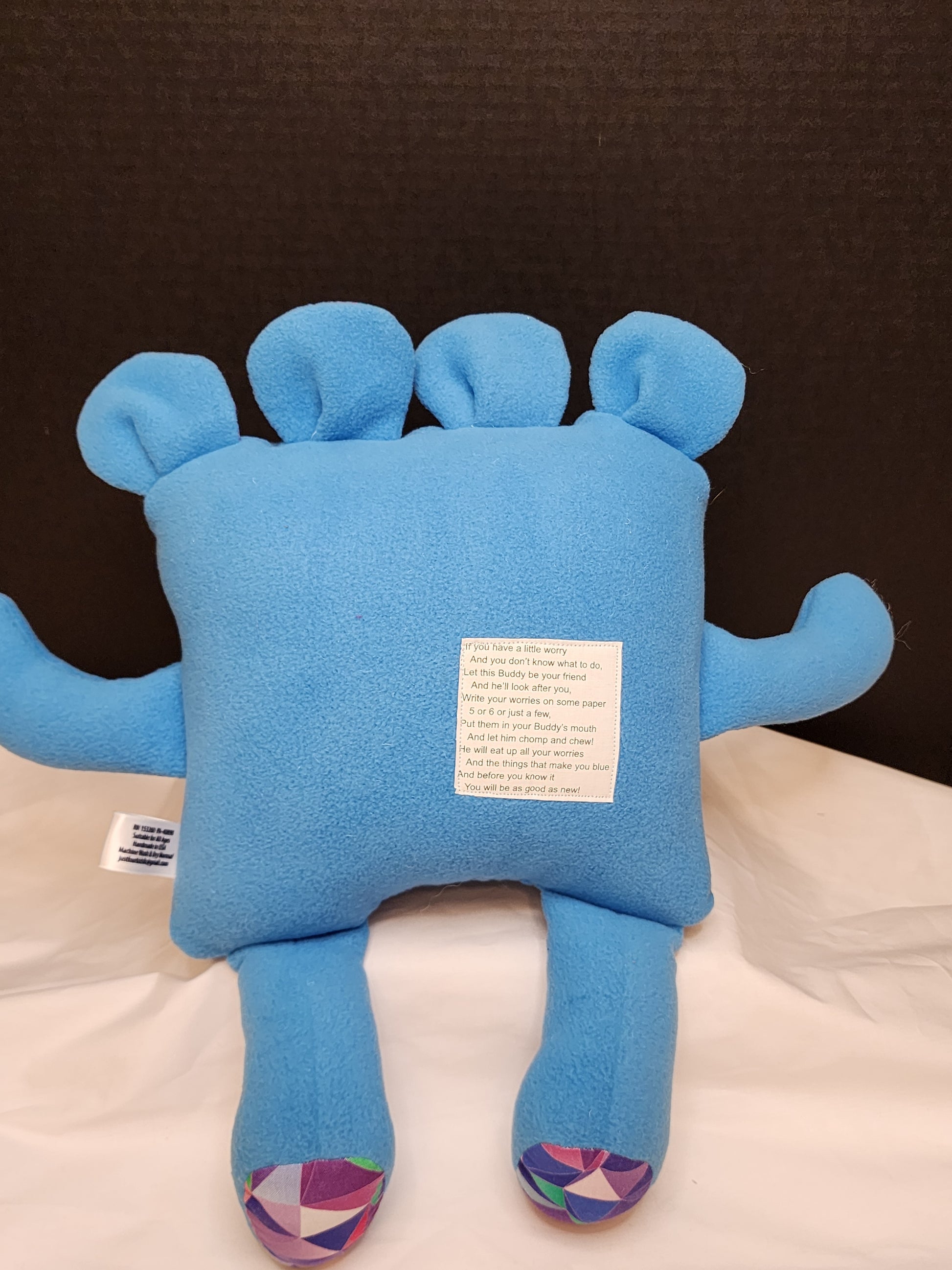 This custom, one-of-a-kind Chomper Buddy is fleece blue with multi color prism lining is ready to chomp any anxieties or worries away! Once you write or draw your worries on paper, you can feed your worries to the Chomper. Lose a tooth, put it in the Chompers mouth for the Tooth Fairy or even a Christmas list for Santa to take out of the zipper mouth. Perfect for all ages, it offers a plush and cozy feel with superior durability for tons of hugs and cuddles.