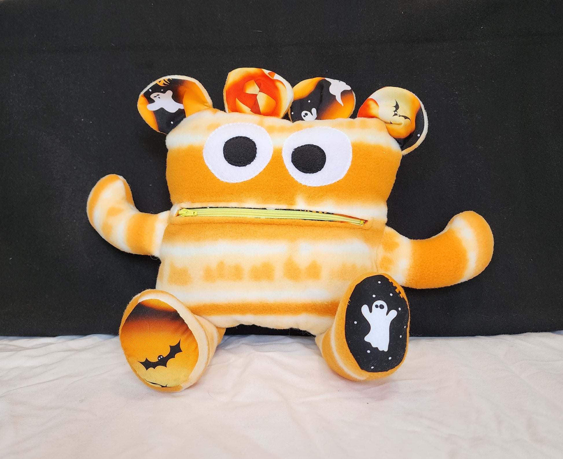 This custom, one-of-a-kind Halloween Chomper Buddy is orange and white fleece with Halloween mix lining and is ready to chomp any anxieties or worries away! Once you write or draw your worries on paper, you can feed your worries to the Chomper. Lose a tooth, put it in the Chompers mouth for the Tooth Fairy or even a Christmas list for Santa to get out of the zipper mouth. Perfect for all ages, it offers a plush and cozy feel with superior durability for tons of hugs and cuddles.
