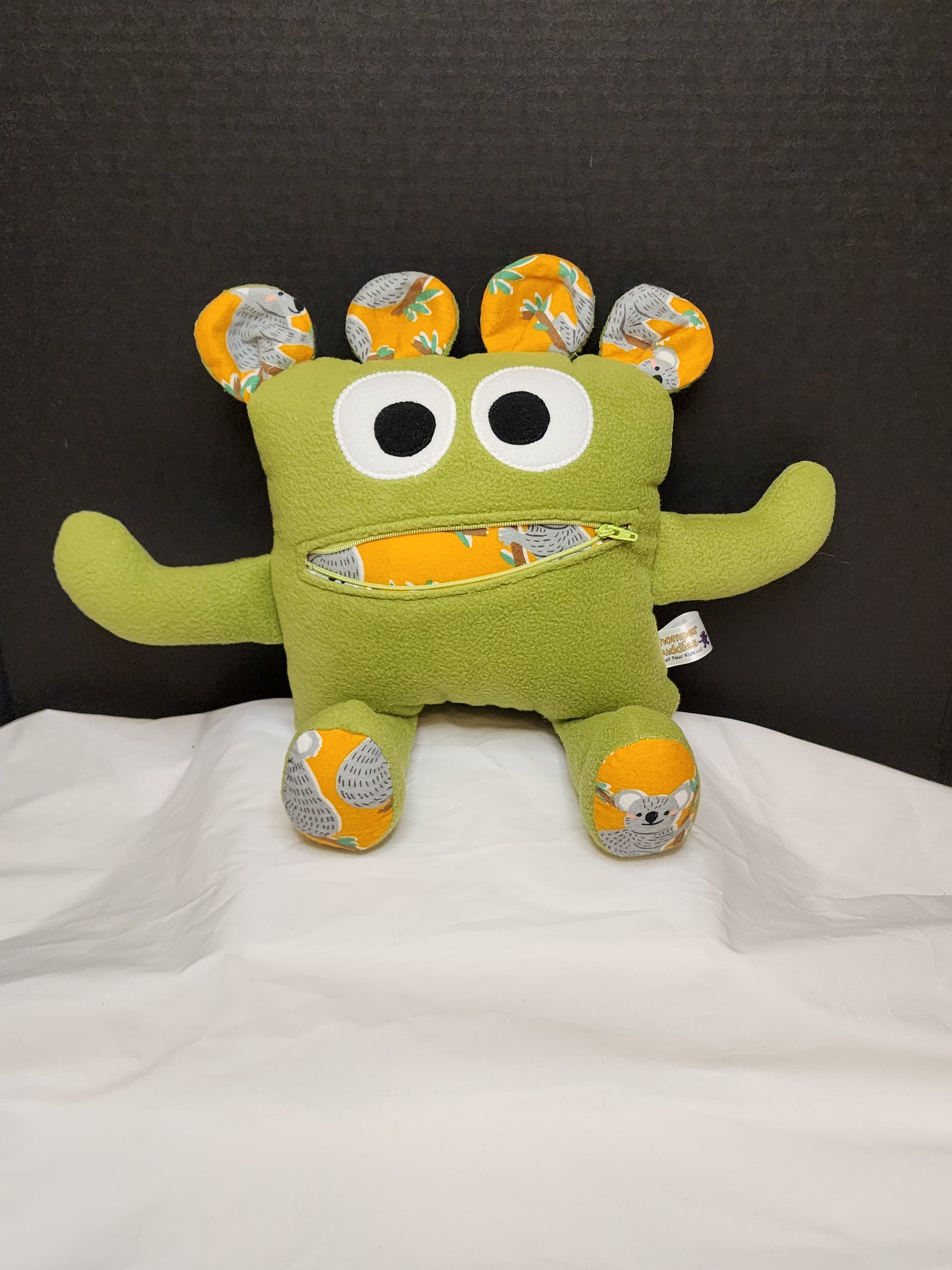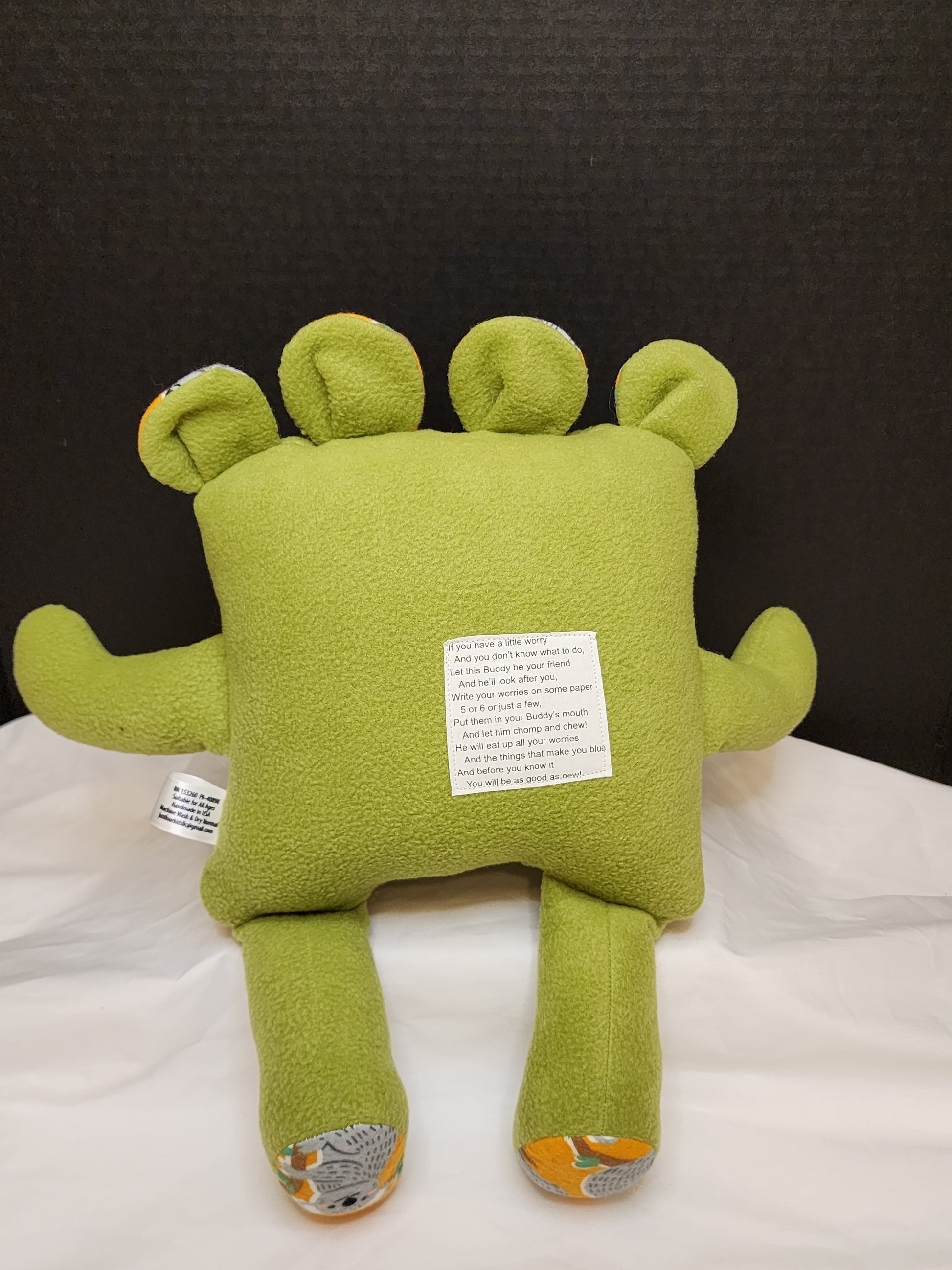 This custom, one-of-a-kind Chomper Buddy is green fleece with Koala lining is ready to chomp any anxieties or worries away! Once you write or draw your worries on paper, you can feed your worries to the Chomper. Lose a tooth, put it in the Chompers mouth for the Tooth Fairy or even a Christmas list for Santa to take out of the zipper mouth. Perfect for all ages, it offers a plush and cozy feel with superior durability for tons of hugs and cuddles.