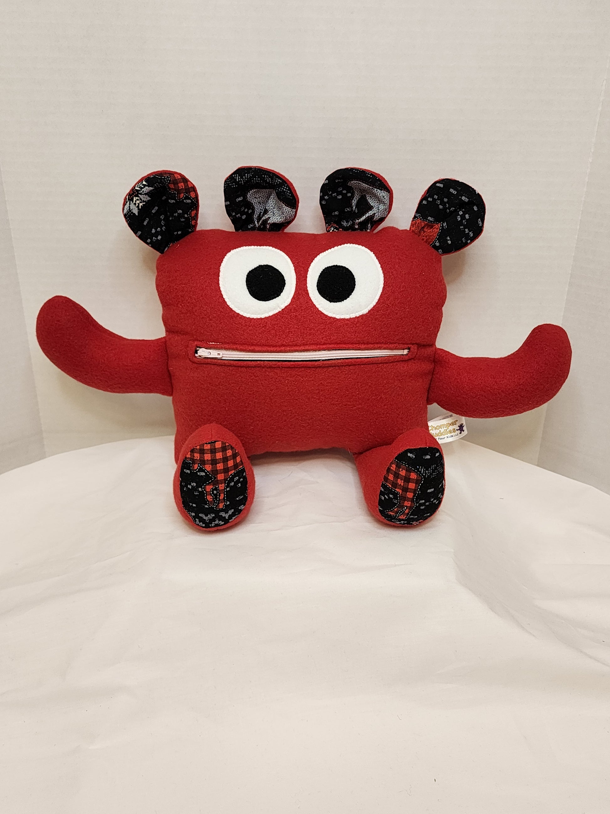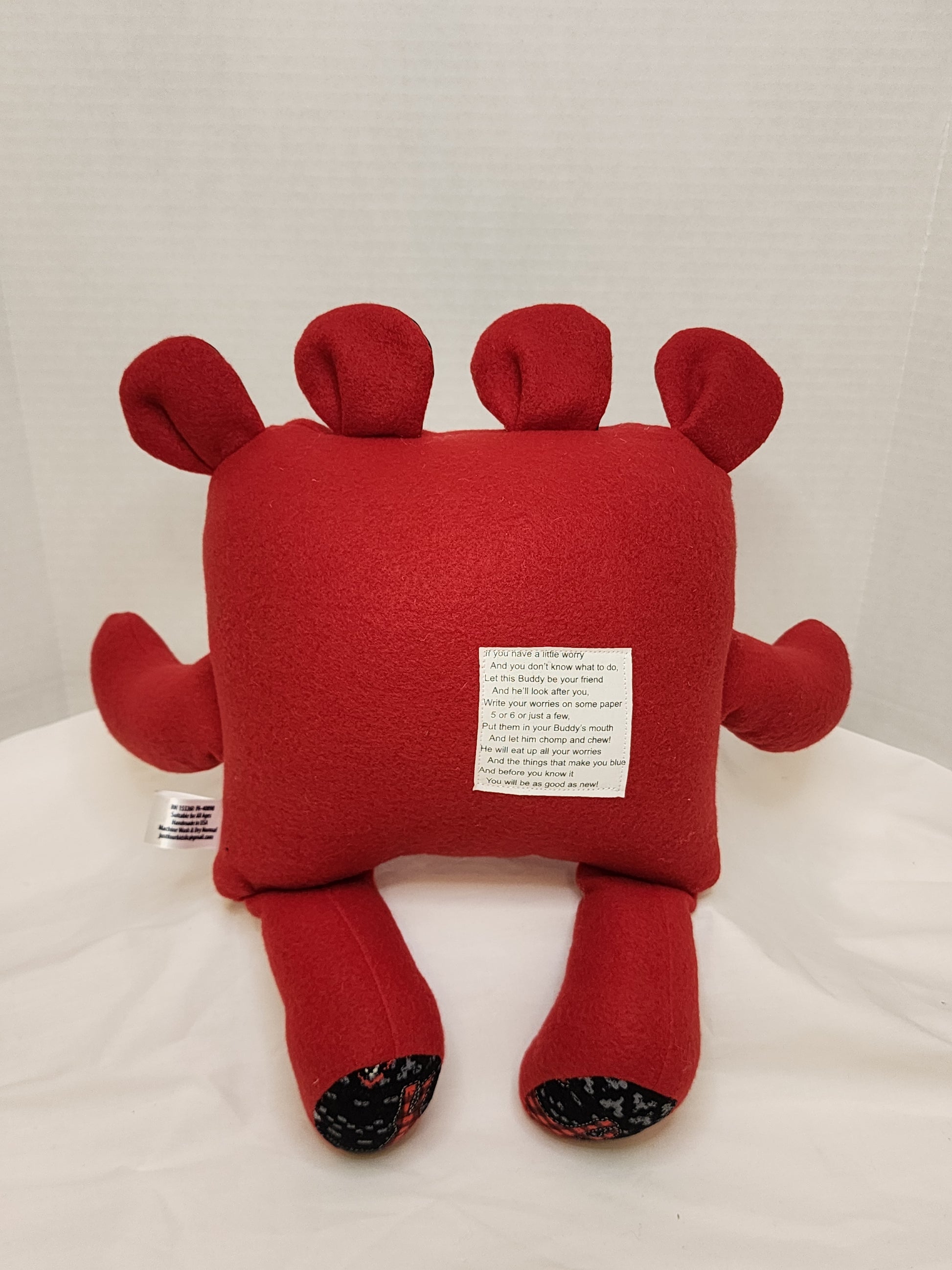 This custom, one-of-a-kind Chomper Buddy is red fleece with black and red moose lining is ready to chomp any anxieties or worries away! Once you write or draw your worries on paper, you can feed your worries to the Chomper. Lose a tooth, put it in the Chompers mouth for the Tooth Fairy or even a Christmas list for Santa to take out of the zipper mouth. Perfect for all ages, it offers a plush and cozy feel with superior durability for tons of hugs and cuddles.