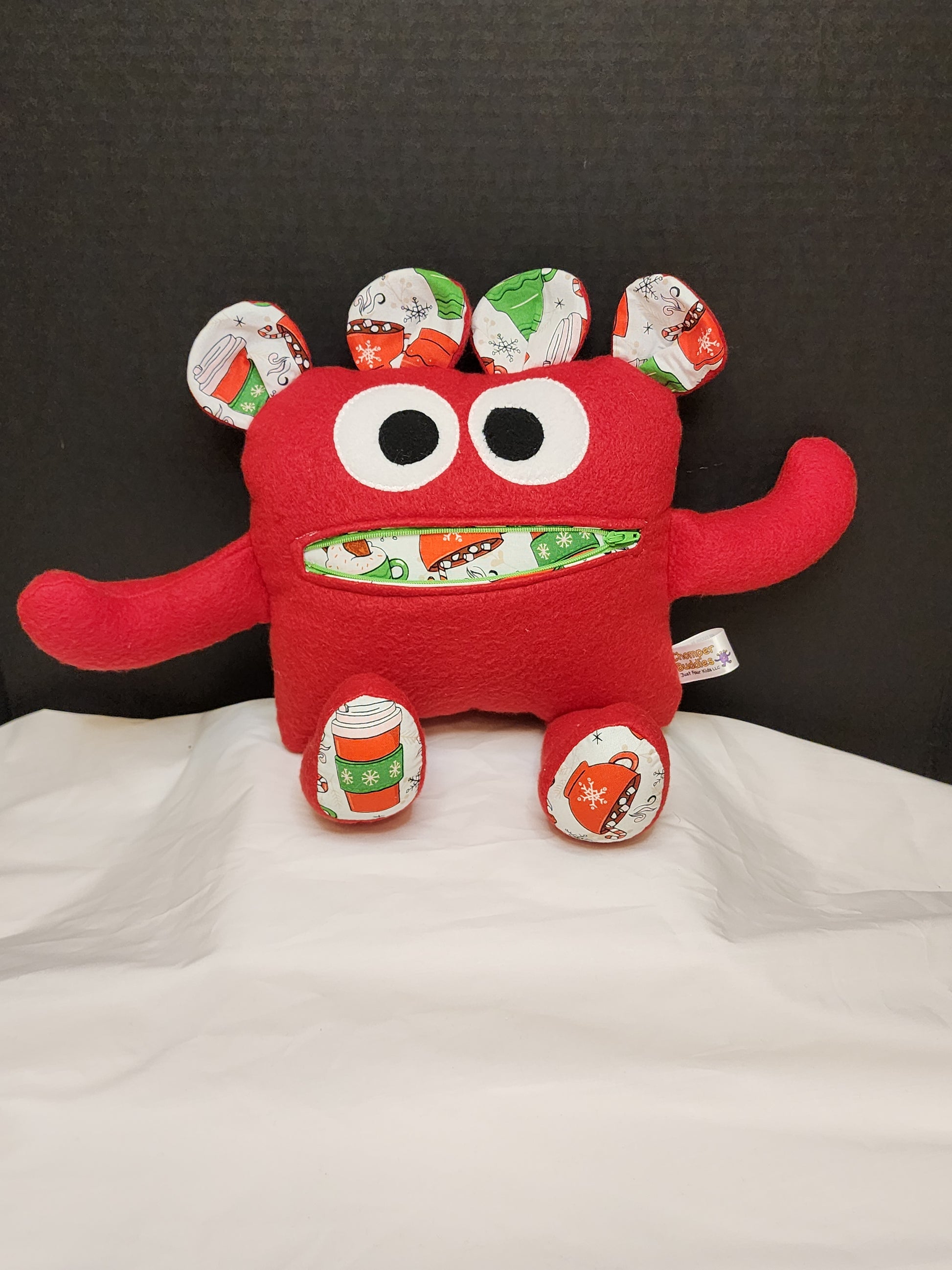 This custom, one-of-a-kind Chomper Buddy is red fleece with hot chocolate cups lining is ready to chomp any anxieties or worries away! Once you write or draw your worries on paper, you can feed your worries to the Chomper. Lose a tooth, put it in the Chompers mouth for the Tooth Fairy or even a Christmas list for Santa to take out of the zipper mouth. Perfect for all ages, it offers a plush and cozy feel with superior durability for tons of hugs and cuddles.