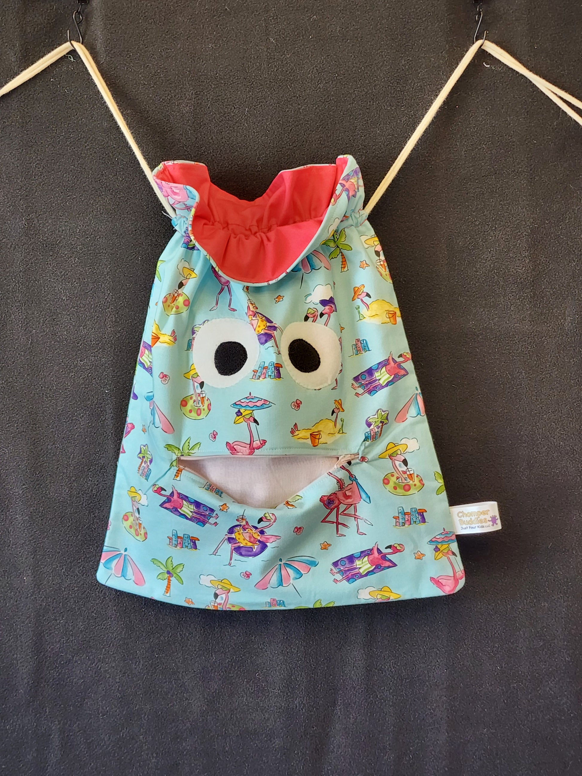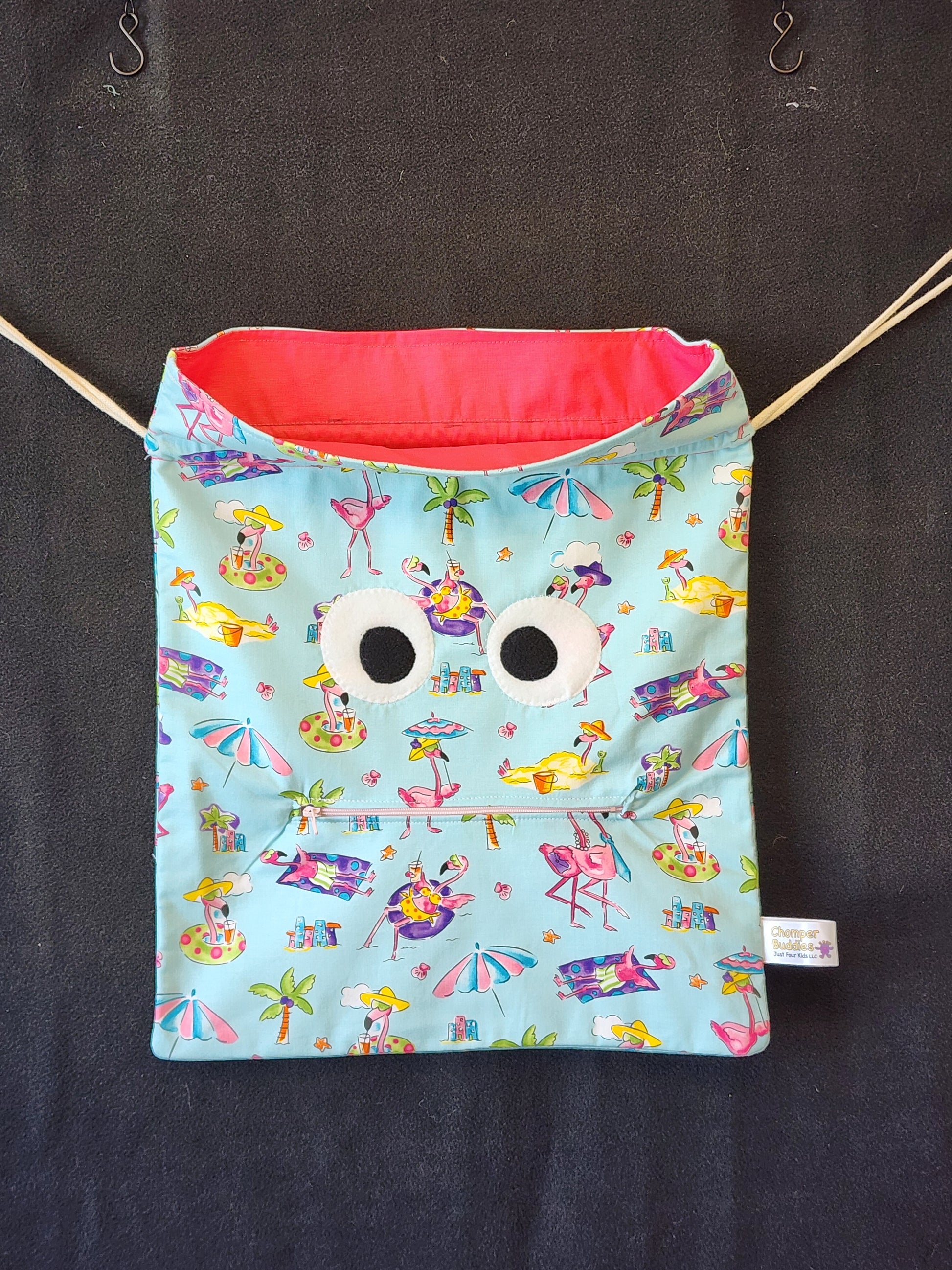 Chomper Buddy Drawstring bag, Dementia Alzheimer's Beach Flamingos