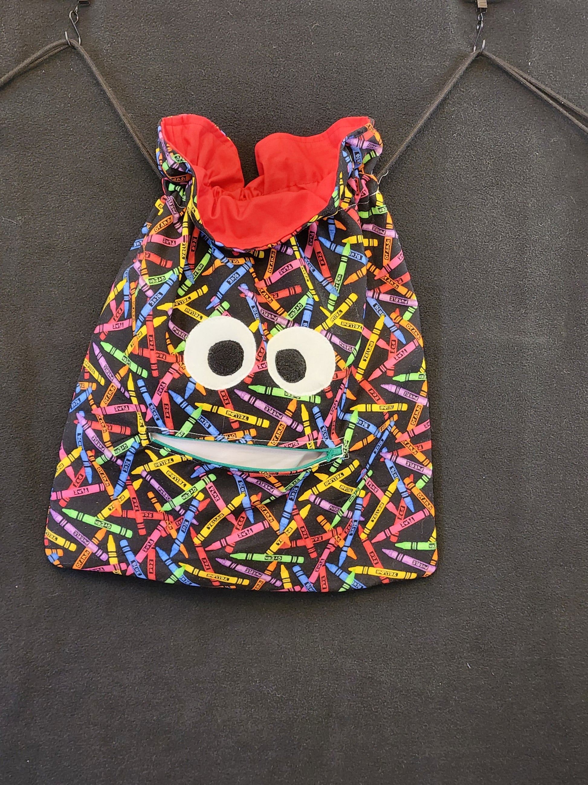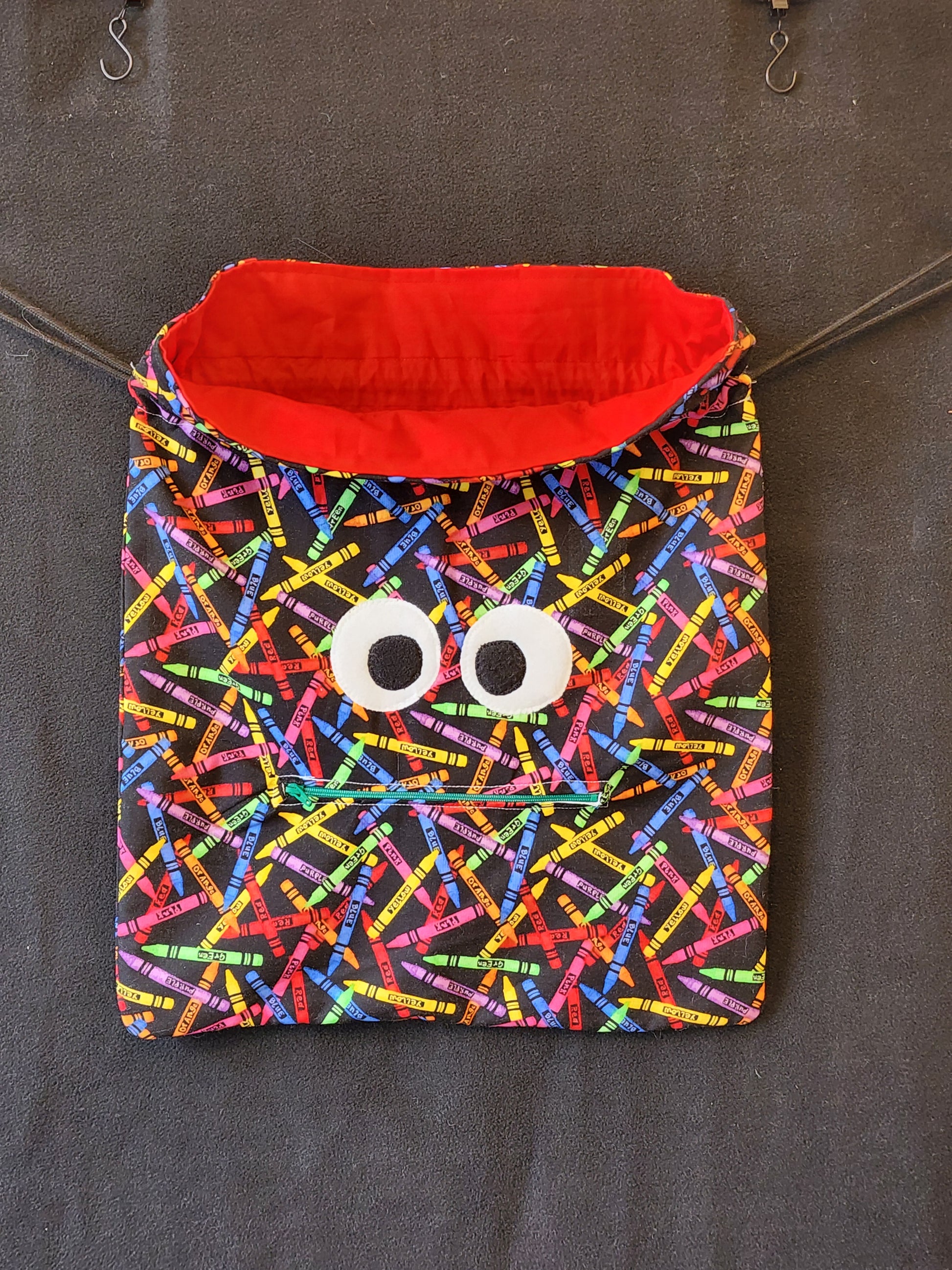 Chomper Buddy Drawstring bag, Slumber Bag, Dementia Alzheimer's, Crayons red lining