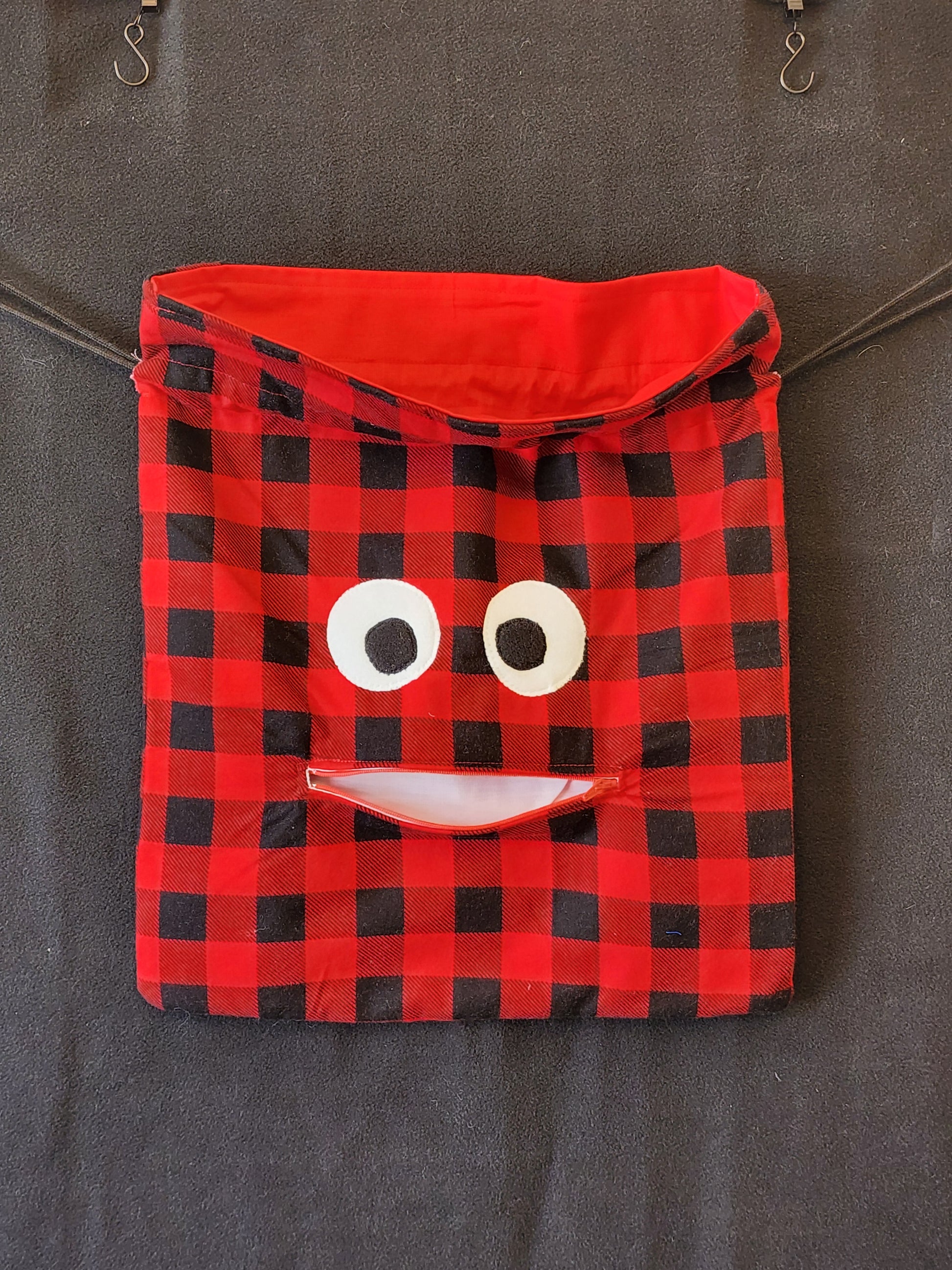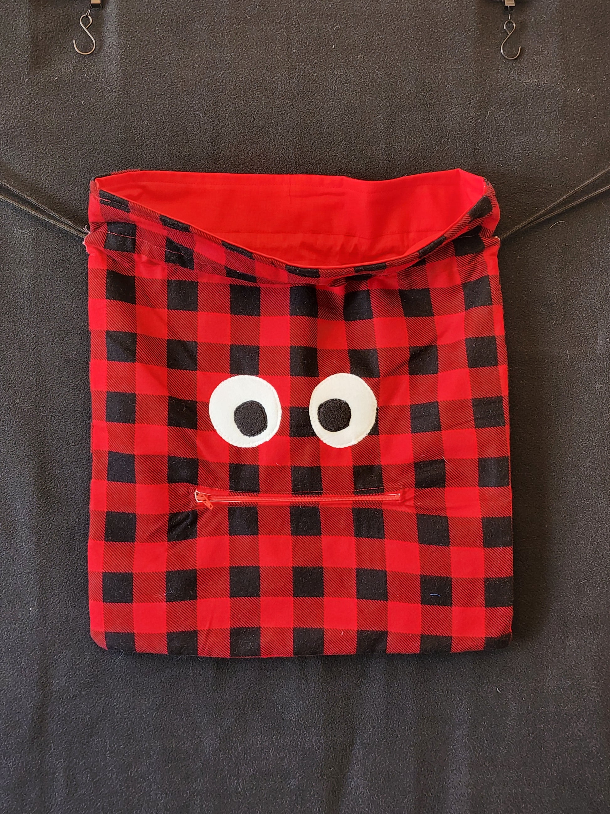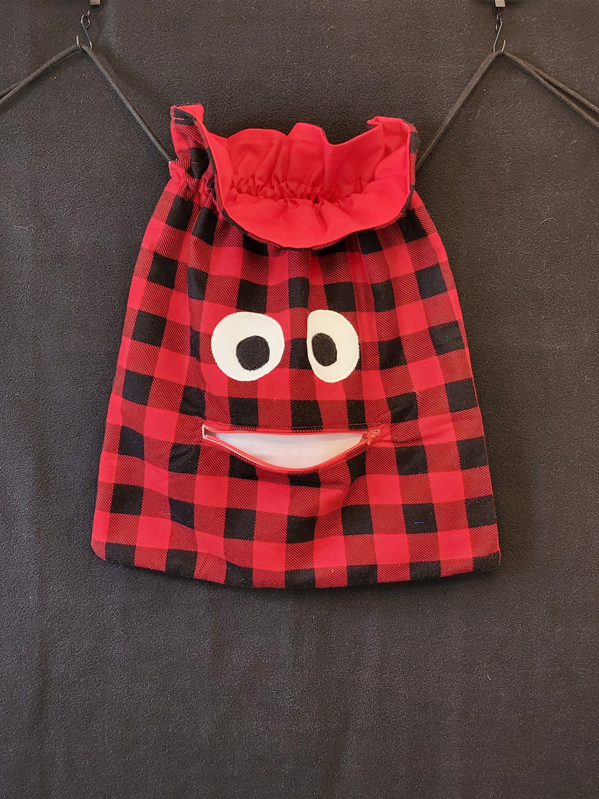 Chomper Buddy Drawstring bag, Slumber Bag, Dementia Alzheimer's, Bag Red Black Buffalo Check