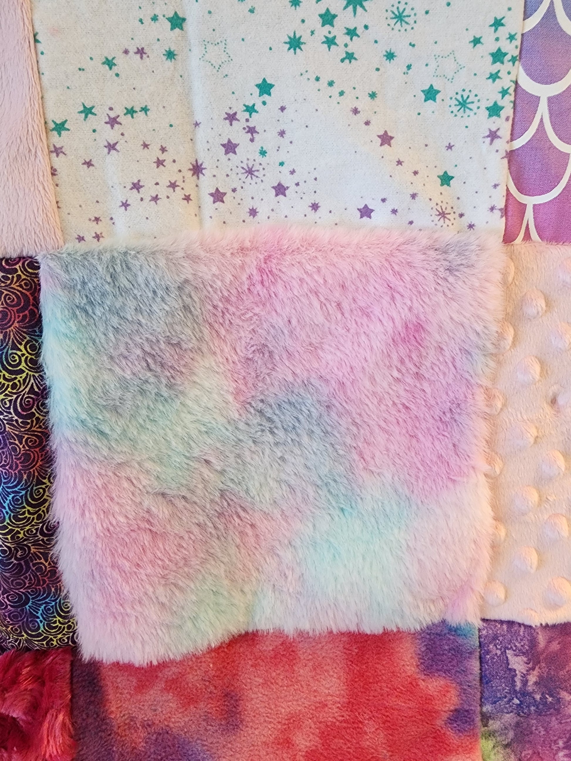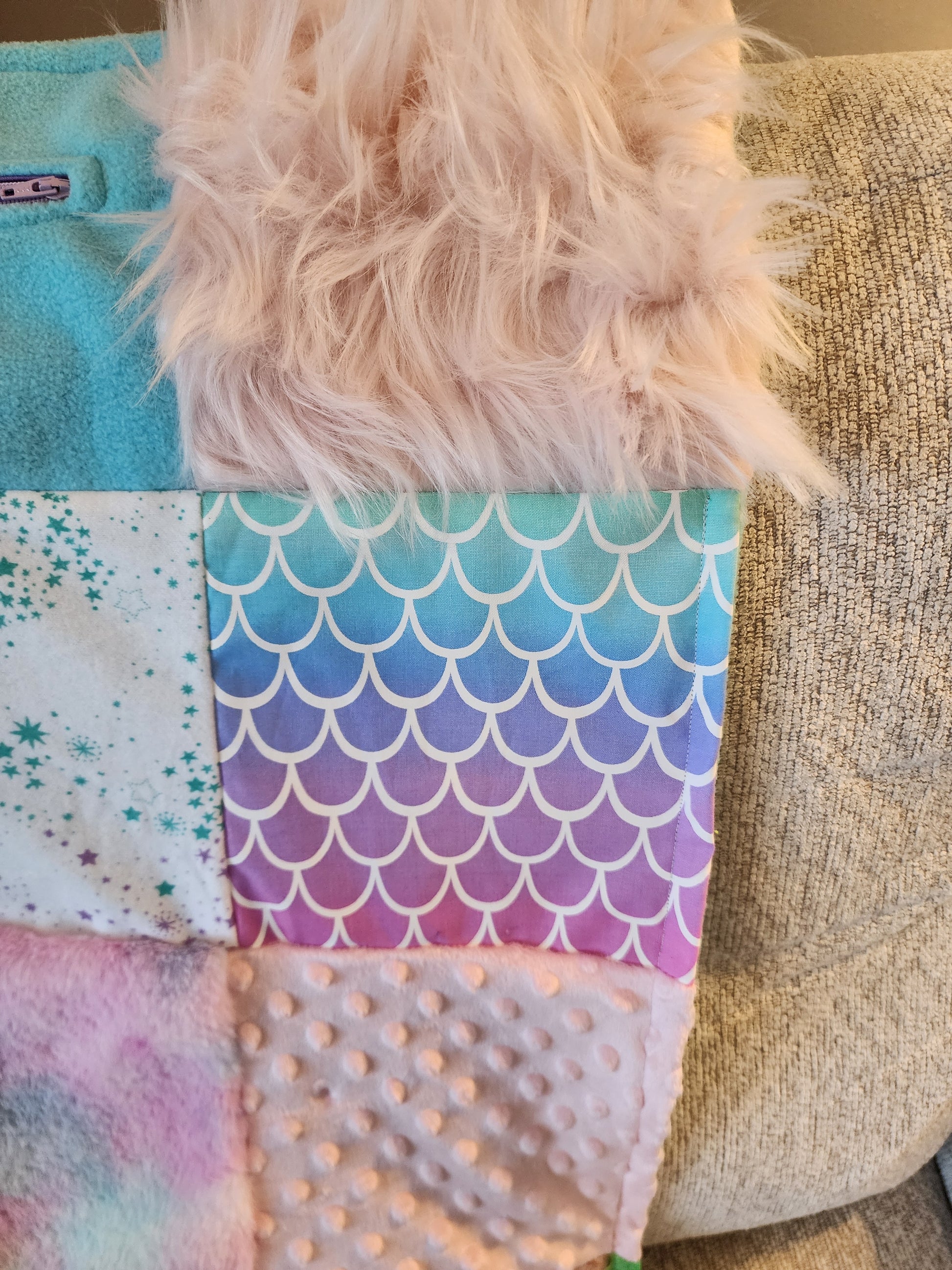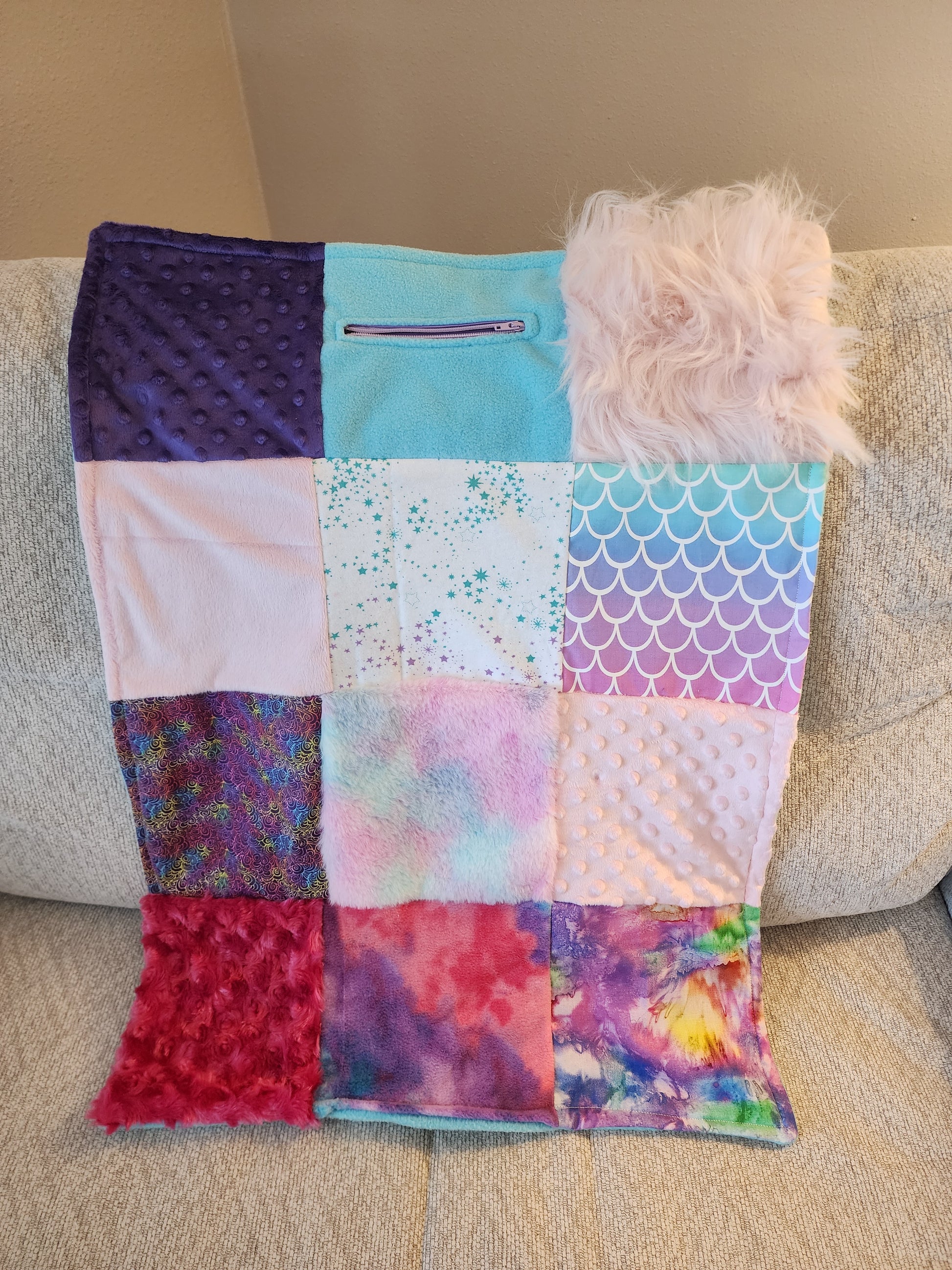 Sensory Blanket- mermaid scales Theme fidget lap blanket Dementia cotton candy