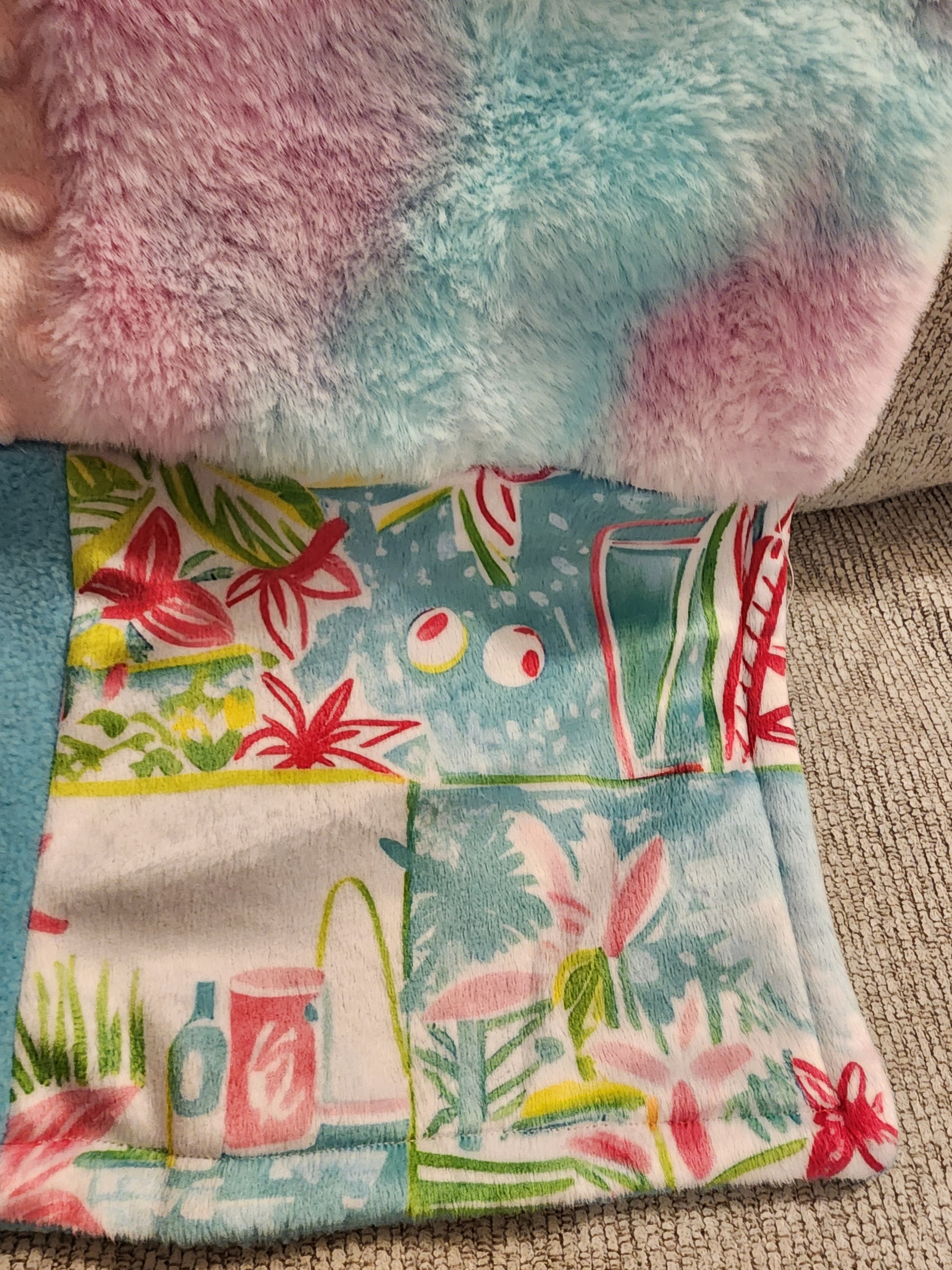 Sensory Blanket- Seahorse Theme fidget lap blanket Dementia cotton candy Lilly Pulitzer inspired