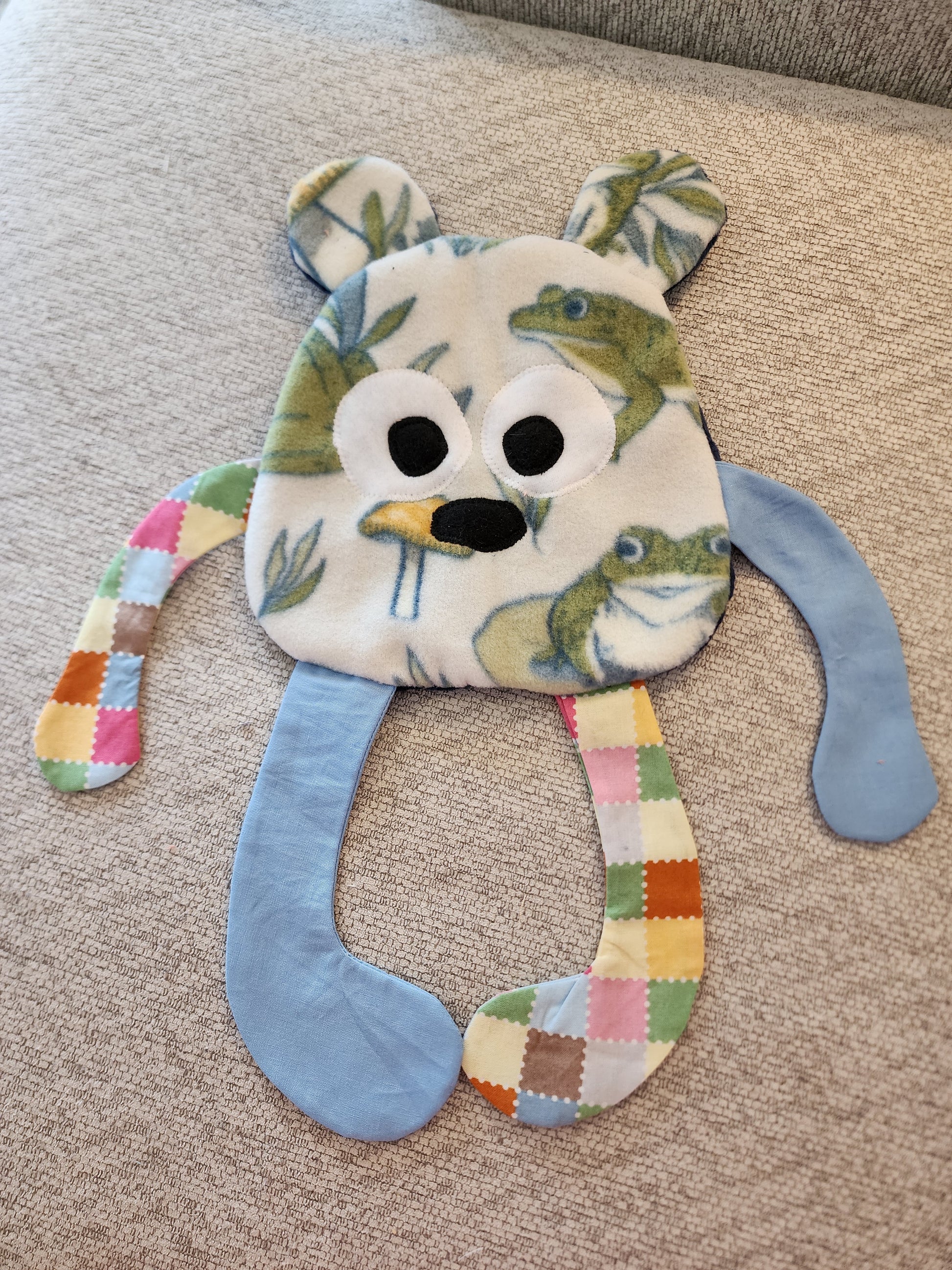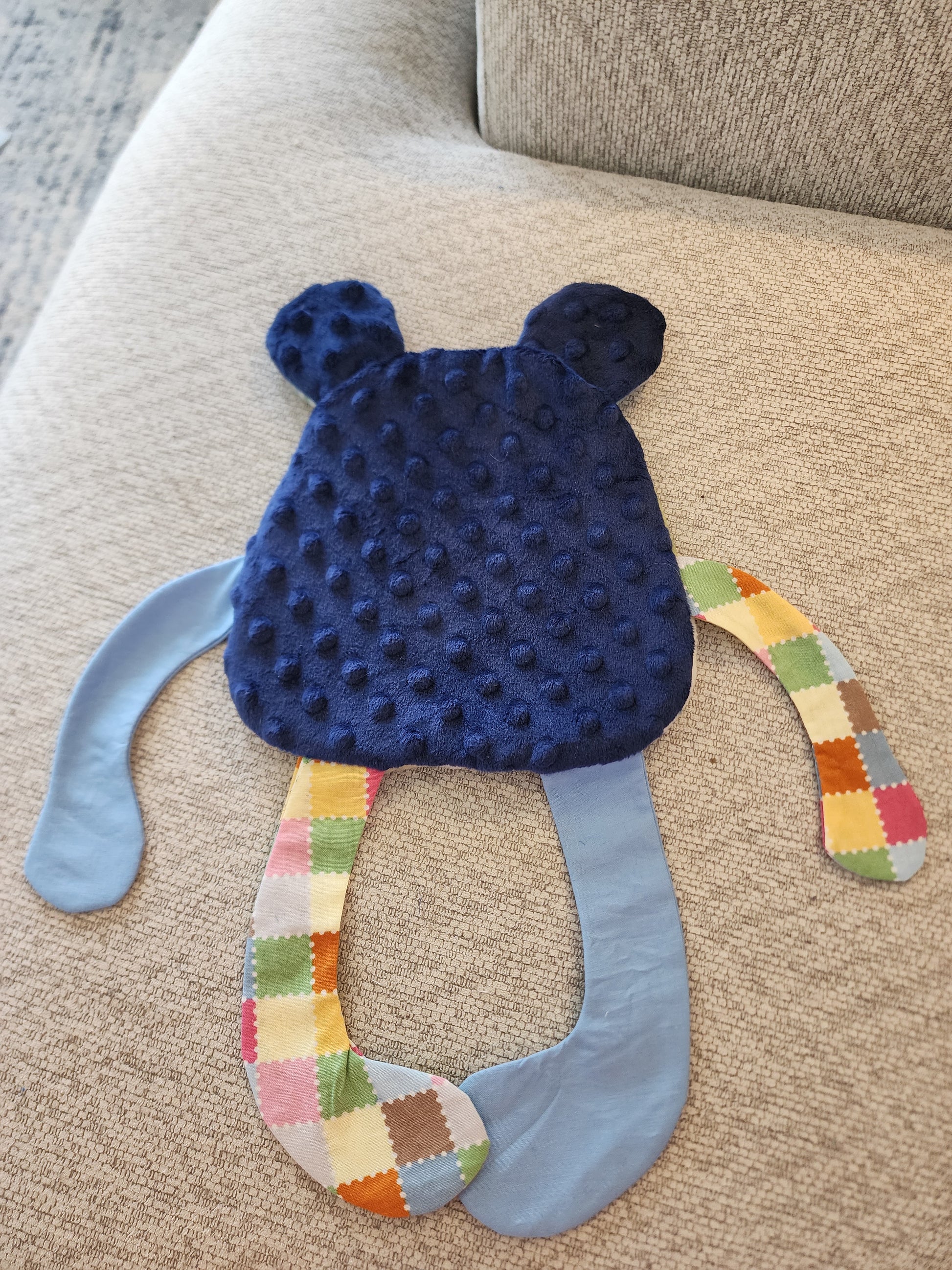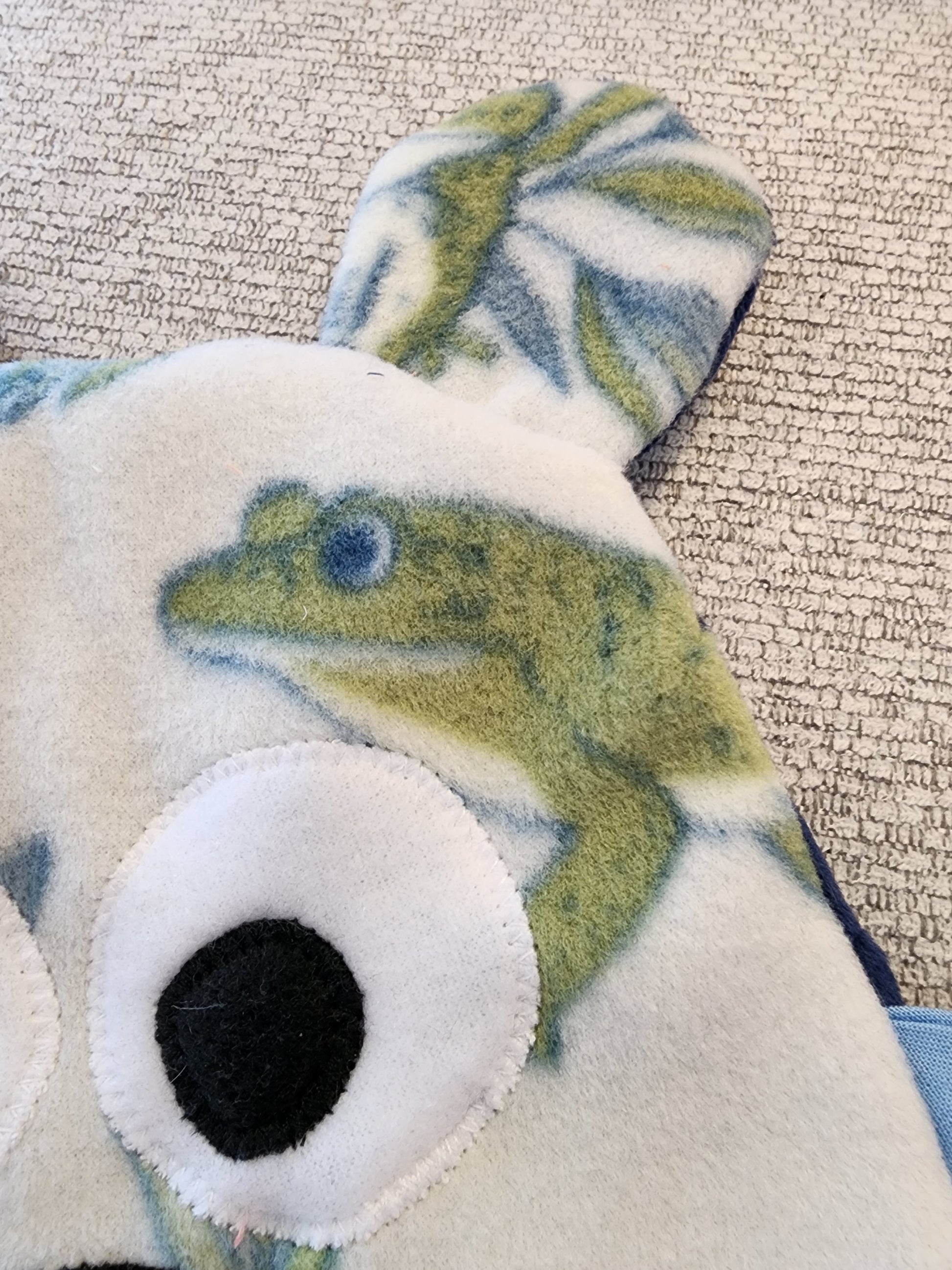 Hi everyone! Thank you for looking at my products! This is a new creation i made for little ones.. it has crinkle material in the body. Its completely make of Frogs and mushrooms fleece, cotton and dimple dot minky fabrics. Perfect for someone that likes to fidget or needs that sensory. The minky is dimple dot. There is the crinkle material in the body of this one.