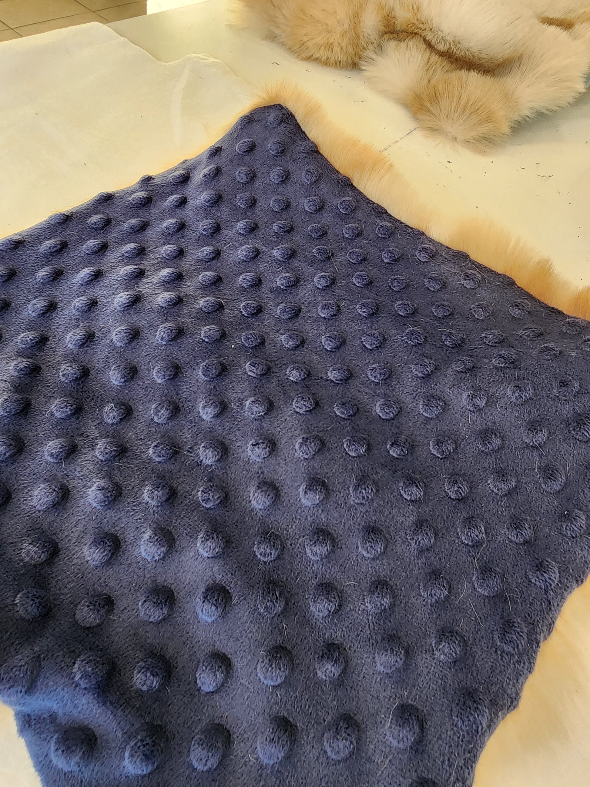 Sensory Square-Rainbow plush fur royal blue dimple dot minky
